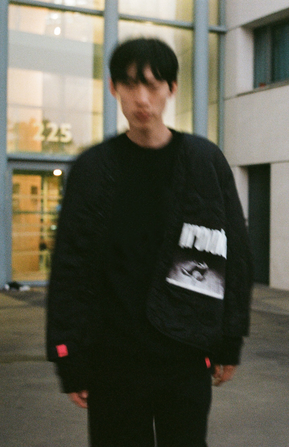 日本で生産したコンパクトなウォッシュ加工済ナイロンギャバジンを使用したルーズフィットのパッド入りボンバージャケット、コットンポプリンのパッド入りキルティングライナー、イタリア産のマットなインターロックナイロンで仕立てたフード付きスウェットシャツとスウェットパンツ、オーガニックコットンで仕立てたオーバーサイズ半袖Tシャツと、英国製パナマポリエステルを使用したベースボールが含まれたコレクションです。