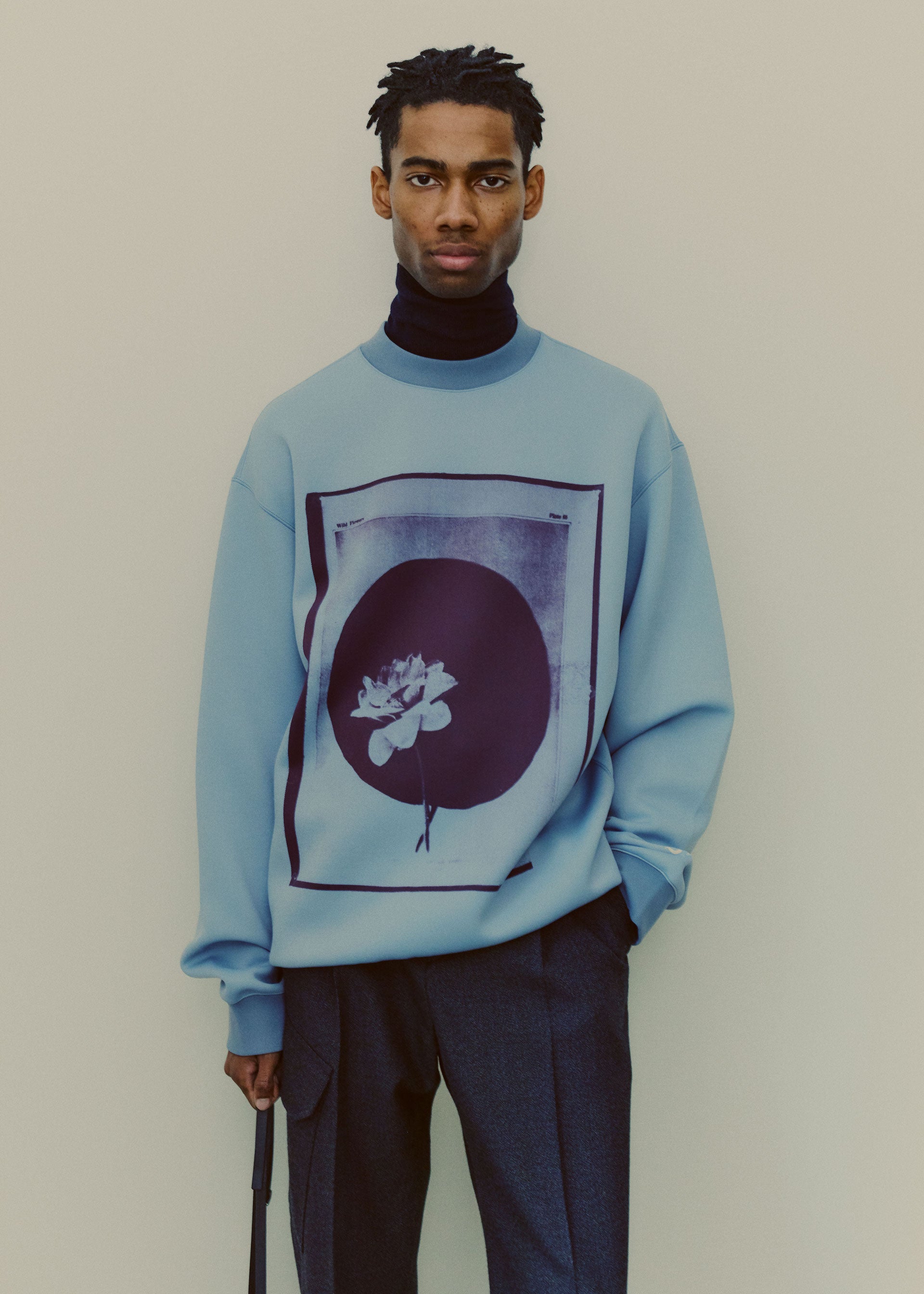 However, beyond the simple opposition of materials, the study evolved into mixing ideas and feelings, a reflection of the place and time we find ourselves in now. Elevated materials utilized in more relaxed shapes, such as track suits and cozy inflated pieces, leather jackets and trousers with elastics and coulisse adjustments, roomy jacquard wool overshirts, and double-faced shetland and viscose/nylon flared collar knits. Garments that can both be worn during long stints at home, or in transit (when possible). The underlying feeling being one that reflects an attitude that even if we are required to remain in place, we still appreciate and desire well made, beautiful things.