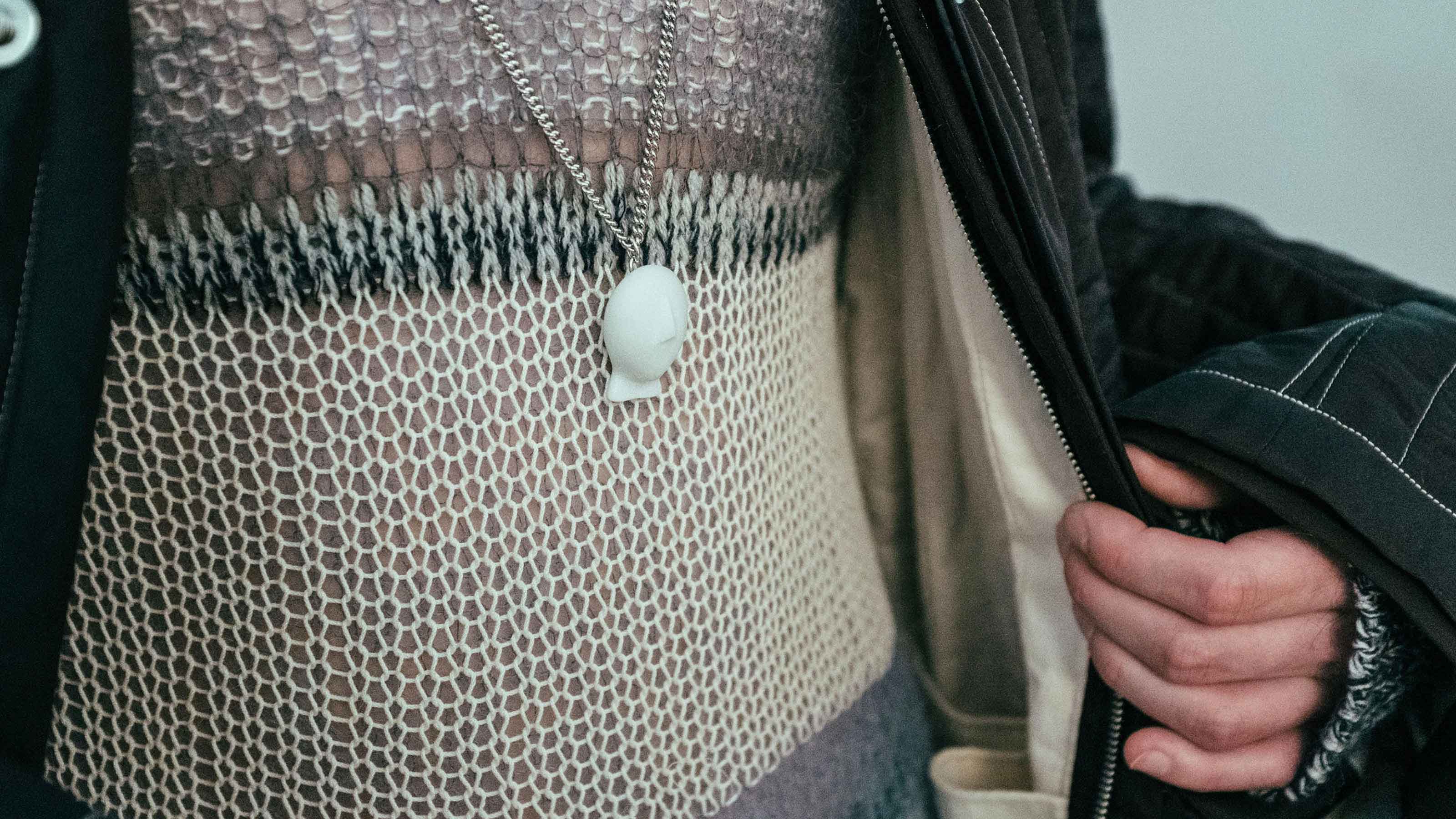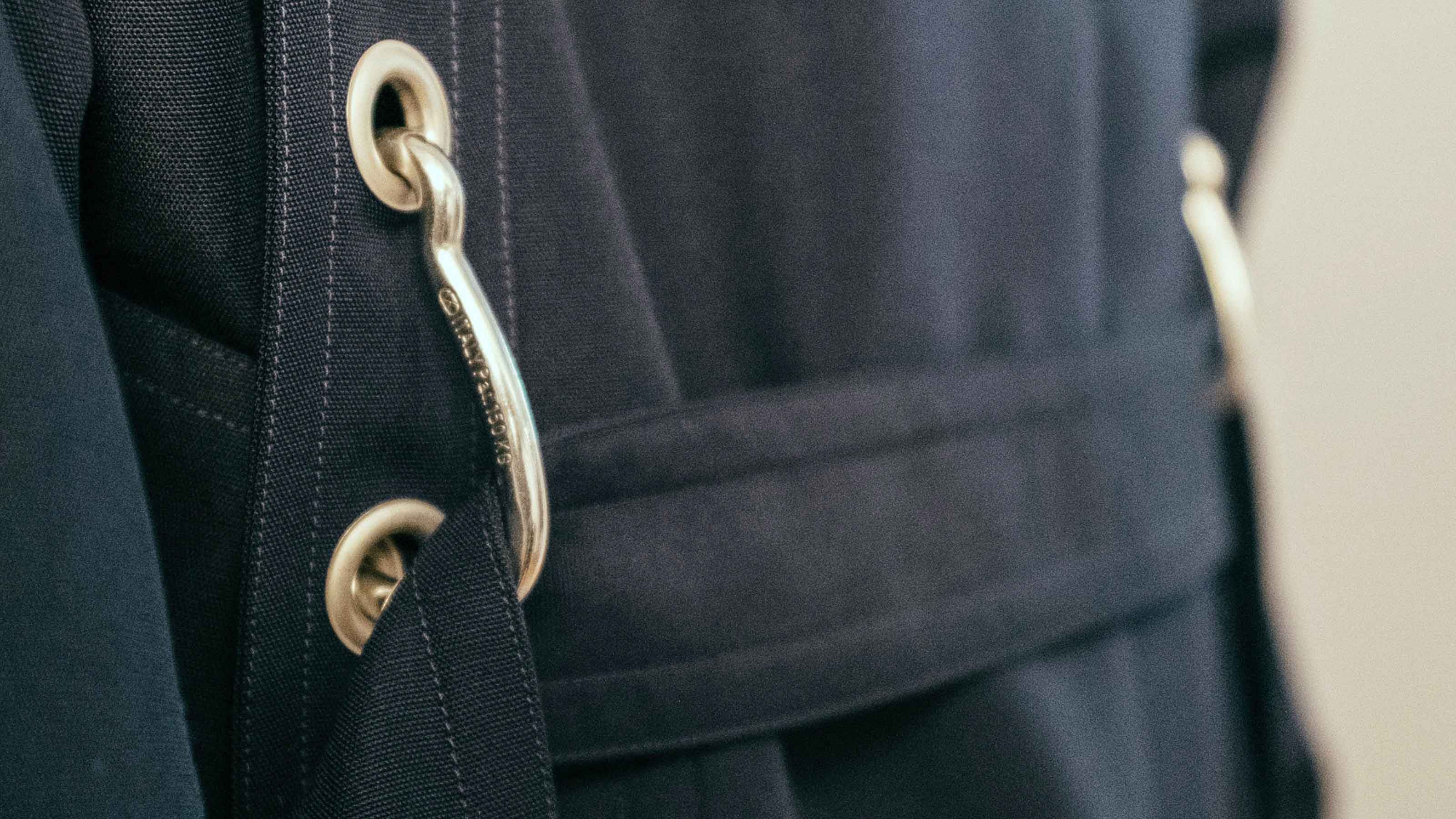 Footwear provides a strong base. Once again OAMC has partnered with Adidas Originals to develop an original design, found in the opening looks. The Type-04 is a cut-away technical shoe with a deliberately artisanal mixture of materials and colors. The strong-soled OAMC boots and oxfords are present, as are tactical sandals, in both open and closed toe versions, and a Chelsea boot, all of which expand upon OAMC’s signature outsole. Finally, an inflated vulcanized sneaker is added to create a strong, graphic form.
