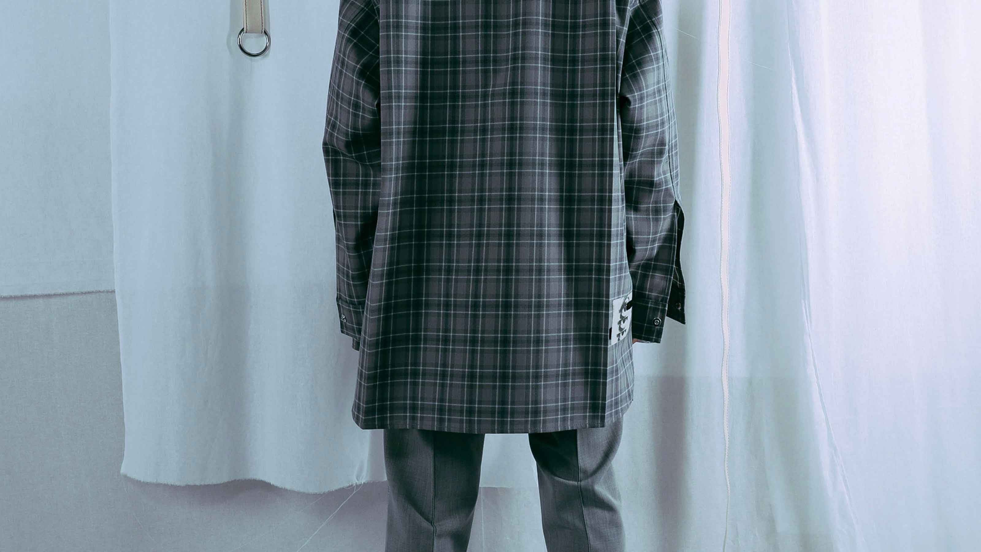 A lightness also provides the cue for color: whites, creams, and light tans are mixed with tones of light and mid greys. Yarn-dyed plaids and stripes are grounded in soft tones with highlights of bright blues. Soft, surgical yellows and pale greens are paired with faded blue and dusty lilac. Salmon, black, and navy are used intermittently.
